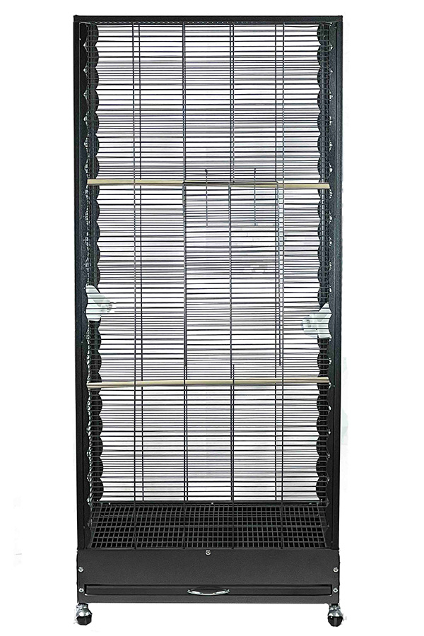 Green Parrot Bird Cage Tall Aviary BC6655 is a beautiful cage for small birds and parrots. Features a metal pull out tray for easy cleaning and decorative trim.