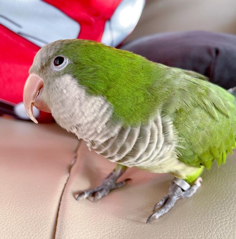 Rio is a sweet and playful 3-month-old male Quaker parakeet. He is already starting to talk and whistle, and he loves to cuddle and play. Quaker parakeets are known for their intelligence, trainability, and affectionate nature.